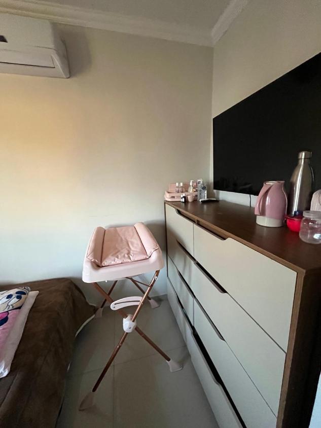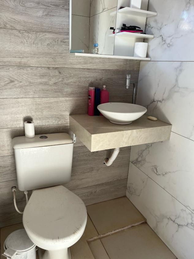 2 dormitórios, sala, sala de jantar, cozinha, banheiro, lavabo, área de serviço e corredor lateral.