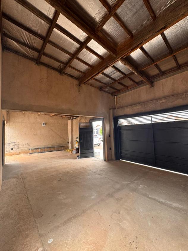 Garagem em fase de acabamento para 2 carros com portão eletrônico.