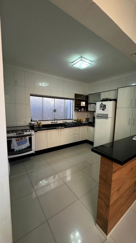 03 dormitórios sendo 01 suíte, banheiro social, sala de visitas, jantar, jardim de inverno, cozinha planejada (fogão embutido) lavanderia com armários planejados, corredor lateral, espaço gourmet (churrasqueira, balcão, pia com gabinete planejado), lavabo, garagem para 04 carros com portão basculante.